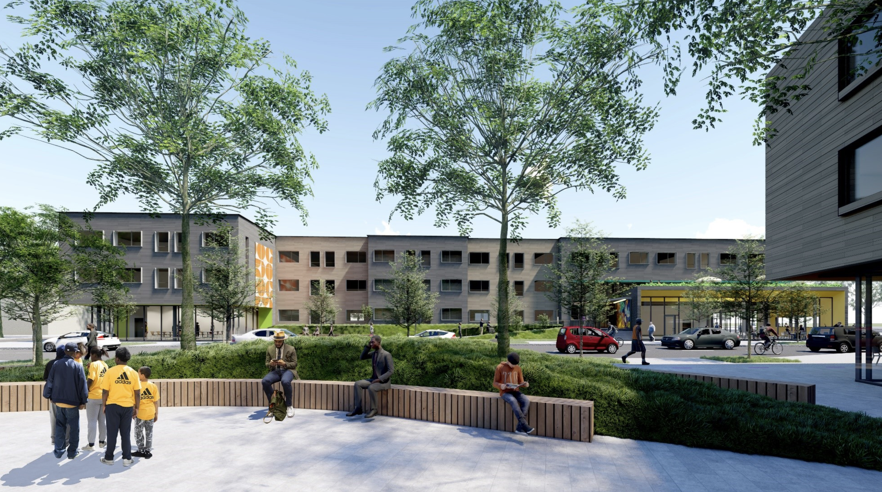 - Updated renderings of the C40/Garfield Green Project mixed-use development. There will be 43 rental units and 30-35 owner-occupied units (a co-op model is being explored). 8,000 s.f. of retail space will be divided (almost equally) in the two buildings