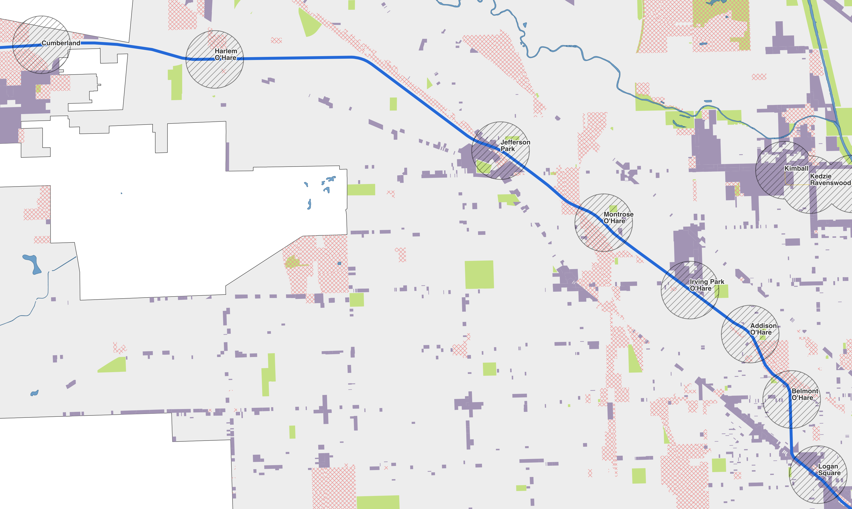 Elevated Chicago needed a map to show how few areas there are in Chicago that allow new multi-family housing (purple areas).