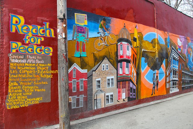What I find particularly interesting is the manner in which the commodification of culture is used as a method to change the perception of community. There have been efforts for decades to remake Pilsen into a center of Mexican culture in Chicago and to minimize the crime and poverty.